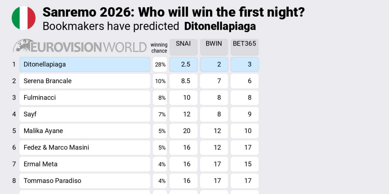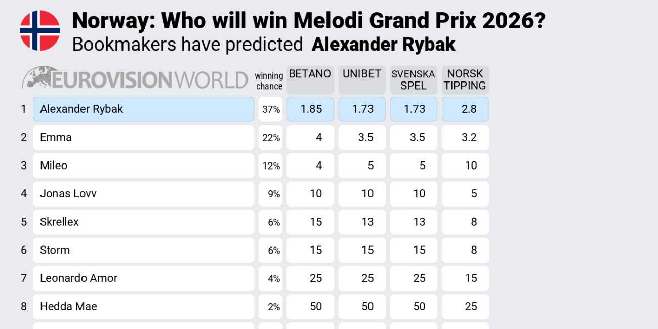 Odds Melodifestivalen 2026: Heat 5 – Winner